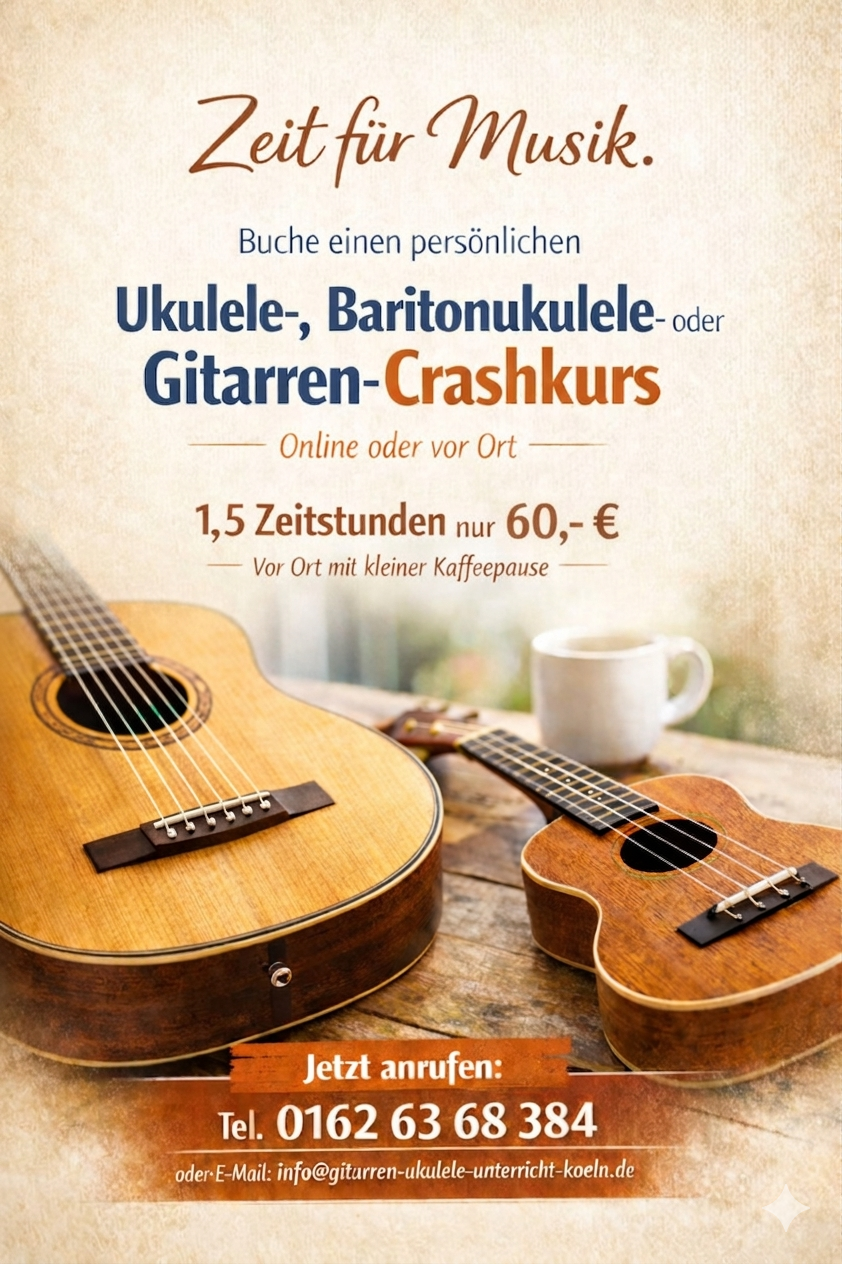 Crachkurs für Gitarre, Ukulele oder Bariton-Ukulele:
